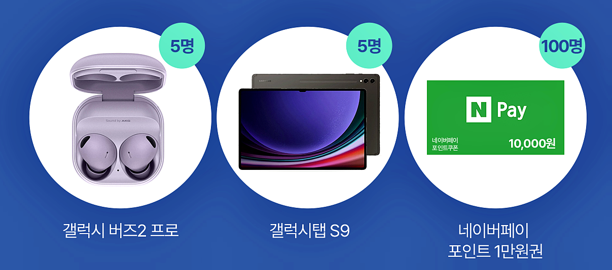 갤럭시 버즈2 프로 (5명) 네이버페이 포인트 1만 원권 (100명)