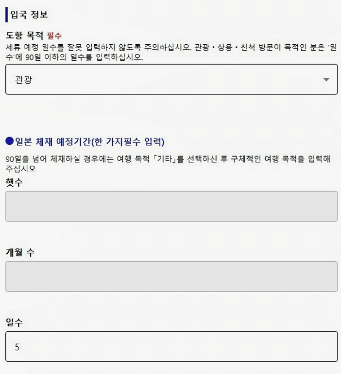 - 도착일: 일본에 도착하는 날짜를 입력합니다.