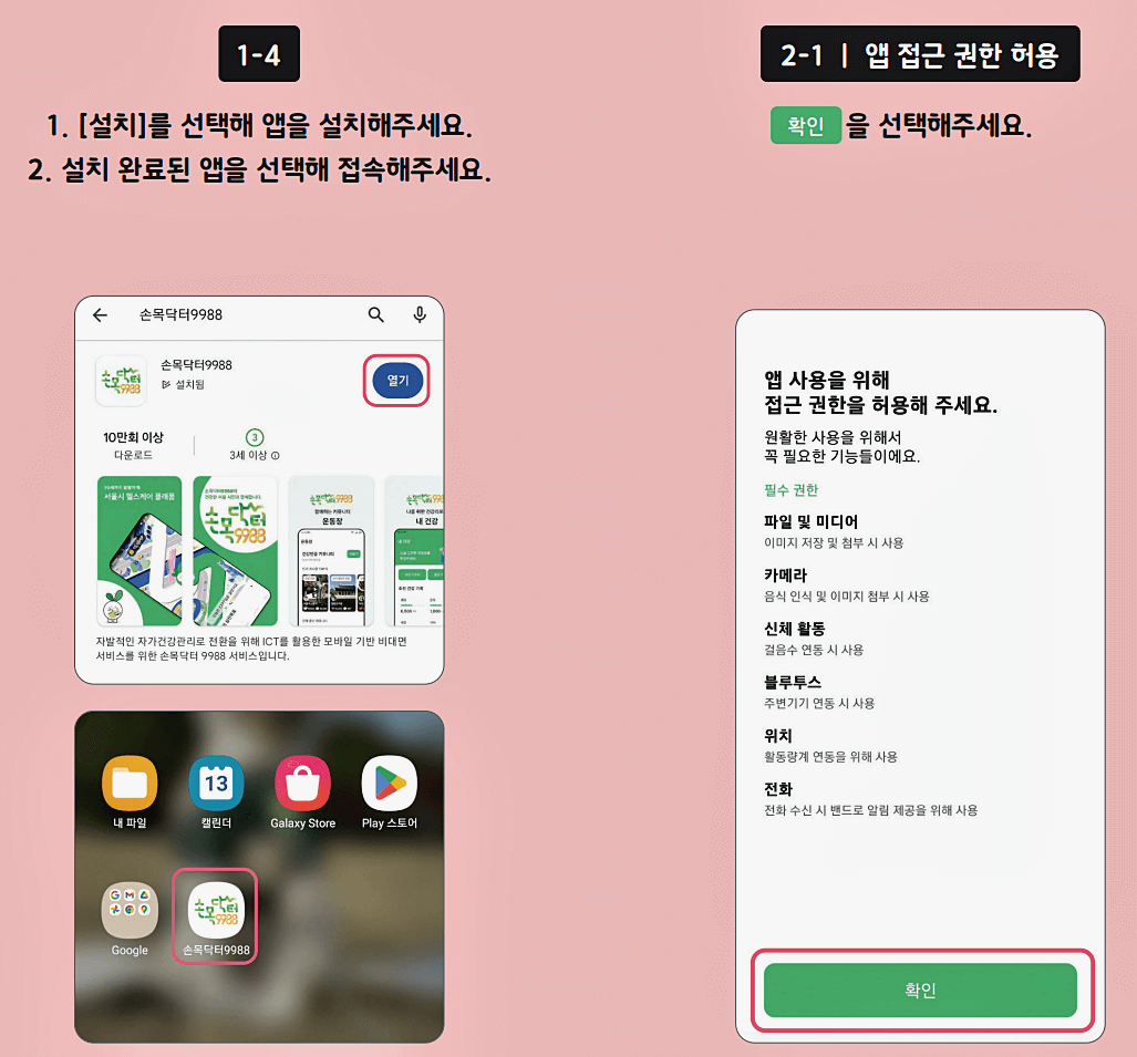 Play Store(플레이스토어) or App Store(앱스토어) 손목닥터9988 검색